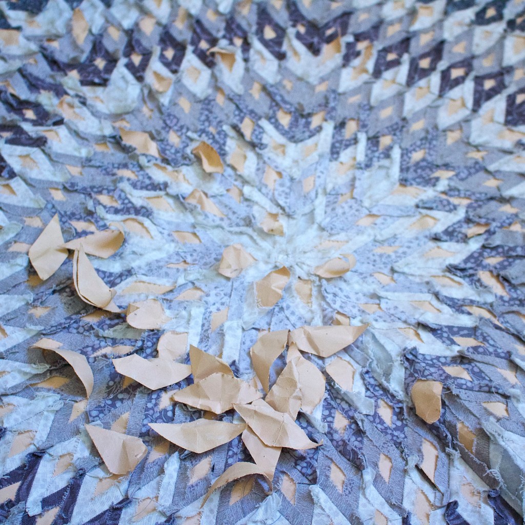 When I do English Paper Piecing and run out of paper pieces, I simply pop out a few glued paper pieces – from the quilt in progress.