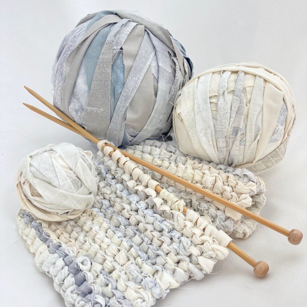 I use all my left over Log Cabin strips to knit something new. Hard on the hands, but if you keep the tension loose, it is easier to knit.