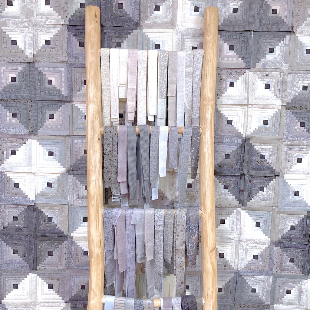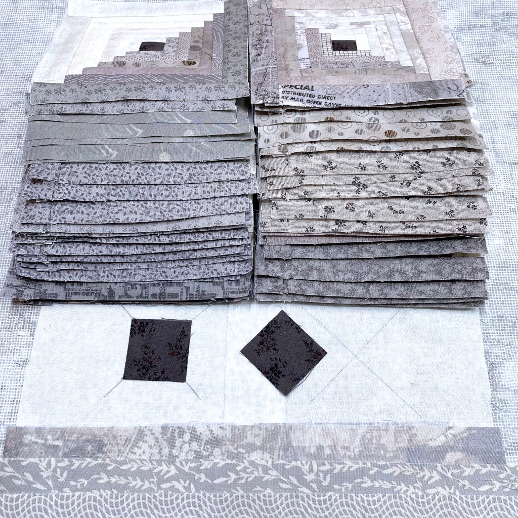 Log cabin asks for a variety of fabrics and I am often tempted to buy just 25cm, which is not economical when I cut along the selvage.