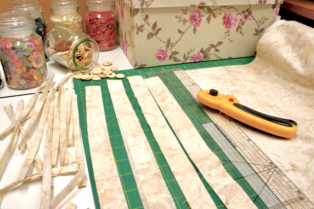 I only cut off one selvage from a new fabric – so I know what side to use when I cut the strips.