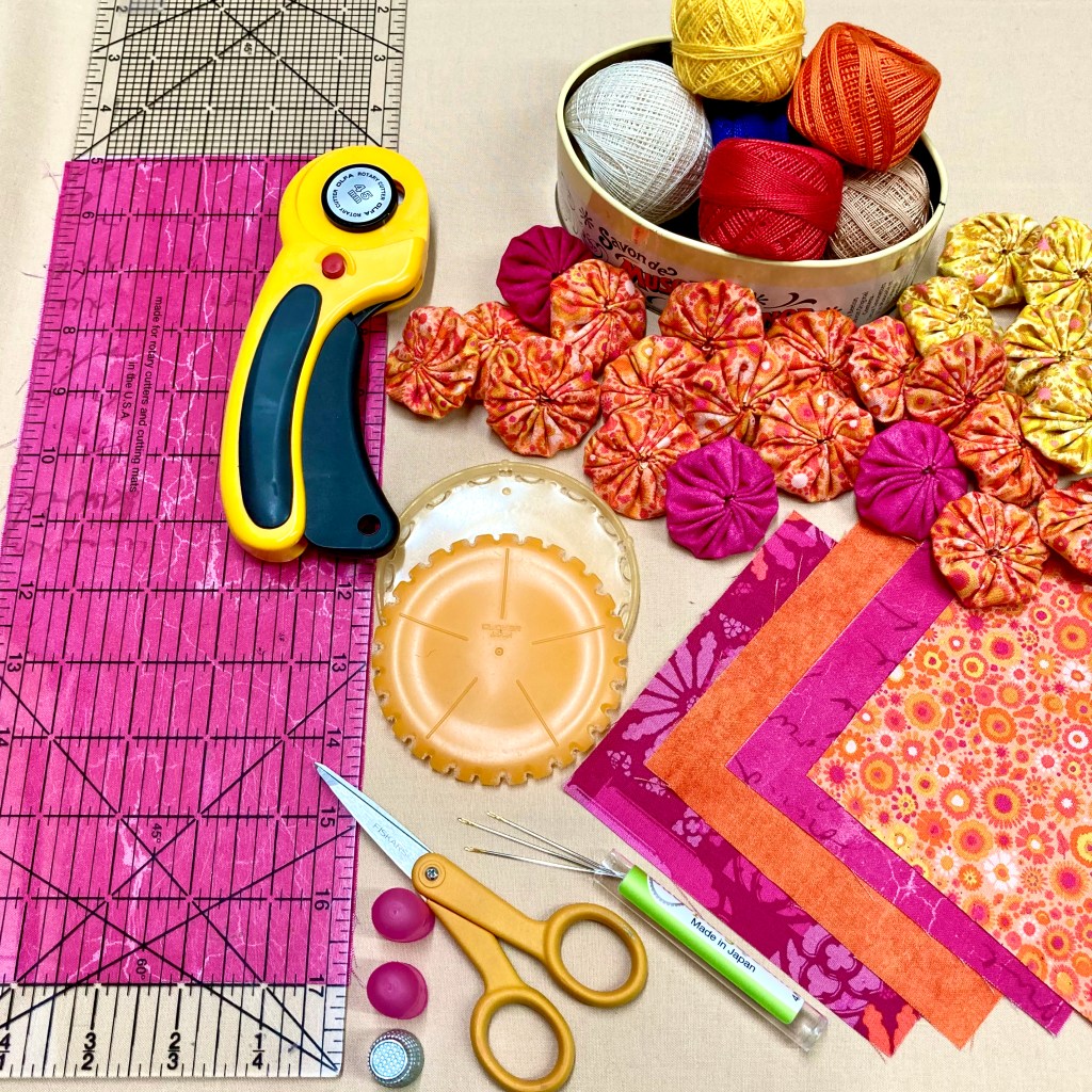 The tools I use when making Suffolk Puffs or Yo-Yos