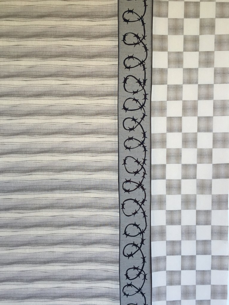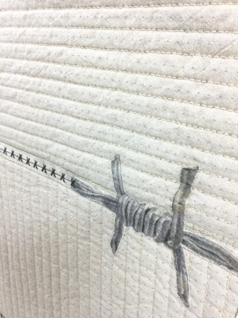 Wile we stitch, people flee their homes – trudging over deserts, highways, byways, fields, and farmlands – to find closed borders.